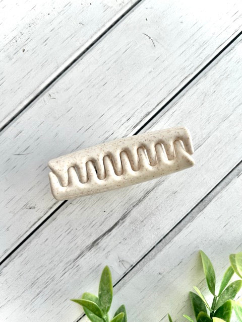 Just the right size, the Little White Chocolate Croissant hair claw is perfect for rocking a chic half-up, half-down hairstyle.