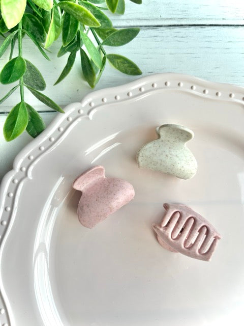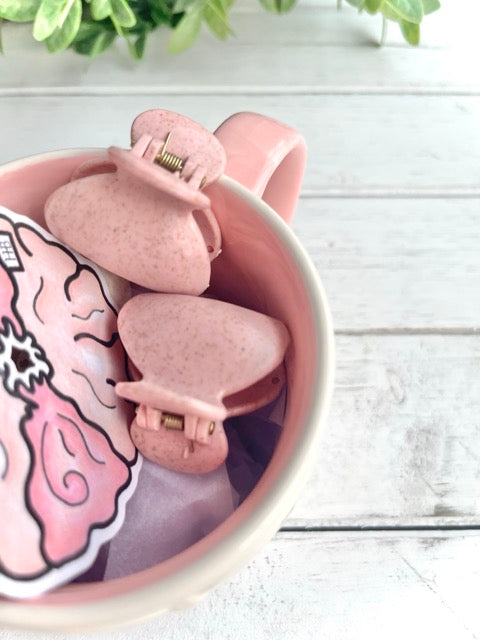 This Strawberry Swirl Topping mini hair clip twirls like a smoothie adding a playful, dessert-inspired charm to any style.